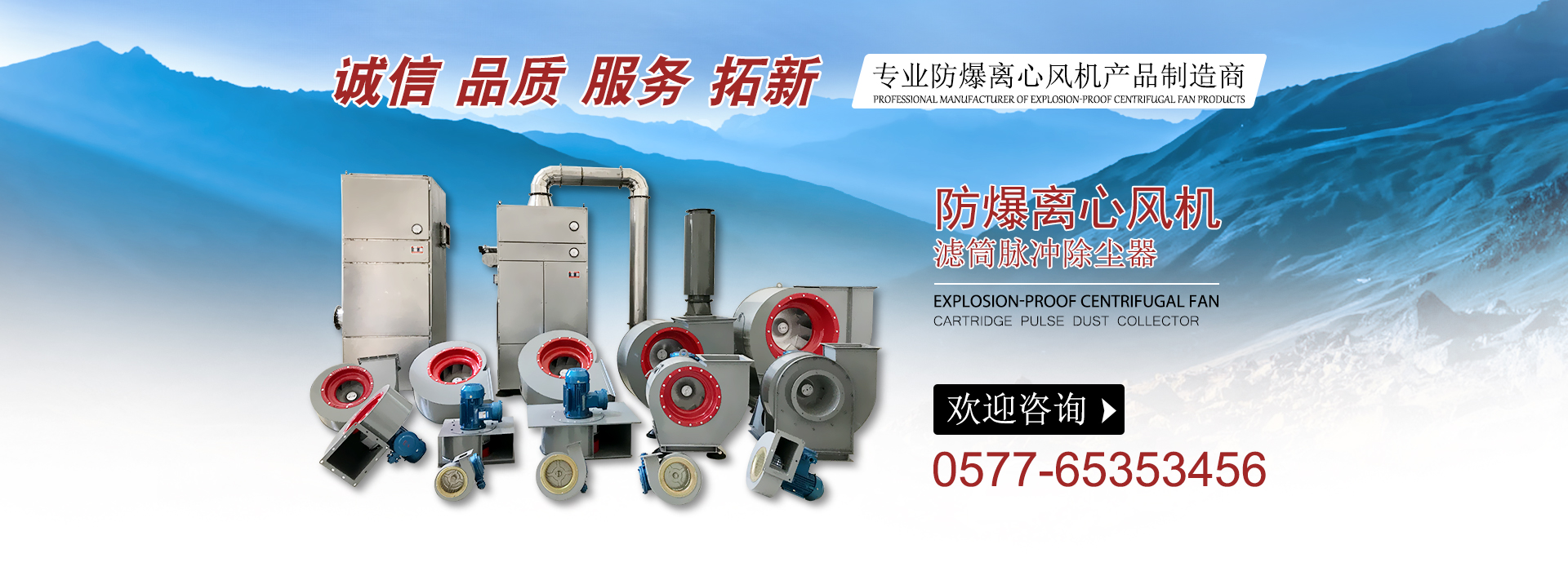 主導產品分為二大類:A 除塵設備(靜電高效除塵器,氣箱脈沖除塵器,離線脈沖袋式除塵器)等。B 模具壓鑄防爆風機鋁葉輪系列,產品廣泛應用于:燃油燃氣鍋爐旁,高濃度粉塵車間,油庫,儲氣站,易爆物品存放倉庫,并有防爆要求的場合安裝使用,可輸送且有易燃易爆和易揮發(fā)性的氣體的通風換氣用。并可按客戶要求設計定制。